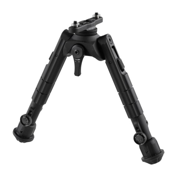 Masywne nóżki można zablokować w 3 pozycjach (na godzinie 3,4:30 i 6), dzięki czemu dwójnóg doskonale sprawdza się na nierównym podłożu. Nogi mają regulowaną wysokość (3 fabryczne nastawy), blokadę ustawień oraz wygodny system rozkładania.