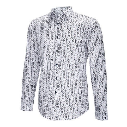 Nadaje się pod marynarkę, sweter czy bluzę. Wykonano ją ze 100% bawełny, dzięki czemu jest miła w dotyku, miękka i przewiewna. Na materiał naniesiony został nadruk w kolorze zieleni, granatu oraz brązu. Kolorystyka ta ułatwi dopasowanie okrycia wierzchniego do koszuli, a motyw zwierzęcy z pewnością przypadnie do gustu pasjonatom myślistwa. Model Animal ma dopasowany i ściśle przylegający do ciała krój