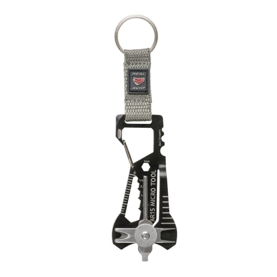 Wytrzymały, nierdzewny szkielet AR15 Micro Tool zawiera narzędzia do regulacji przyrządów celowniczych, rozkładania karabinka i zeskrobywania węgla z zespołu zamka i suwadła. Narzędzie można przypiąć do kluczy, plecaka lub torby na broń, aby zawsze mieć je pod ręką.