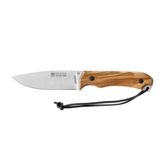 Joker Aguila CO-104 to poręczny nóż outdoorowy, wykonany ze stali nierdzewnej Mova 1.4116 o twardości 55-57 HRC. Taki parametr stali zapewnia średnią odporność na stępienie, co w znacznym stopniu kompensuje szybkość i łatwość ostrzenia, jedna z kluczowych właściwości noża wykorzystywanego w terenie. Ostrze ma wyprowadzony pełny płaski szlif, który w połączeniu z profilem drop-point zapewnia bardzo dobrą płynność cięcia oraz dużą wytrzymałość czubka. W lesie i na biwaku często zdarza się wykonywać precyzyjne prace, dlatego na grzebiecie głowni naniesiono rowkowanie stabilizujące palce podczas dokładnego prowadzenia ostrza.
