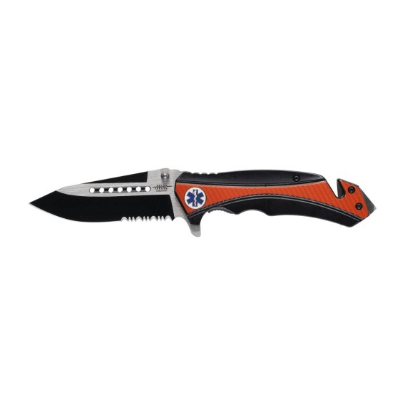 Wyposażony w częściowo ząbkowaną głownię ze stali nierdzewnej będzie doskonałym uzupełnieniem wyposażenia EDC (Every Day Carry) oraz ekwipunku wykorzystywanego przez ratowników medycznych.
