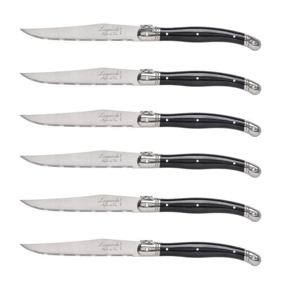 Nóż Laguiole do steków z stali nierdzewnej 6 sztuk w bloku drewnianym czarny Laguiole
