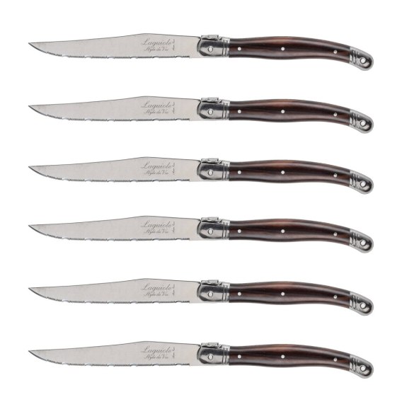 Nóż Laguiole do steków ze stali nierdzewnej 6 sztuk w bloku drewnianym Laguiole