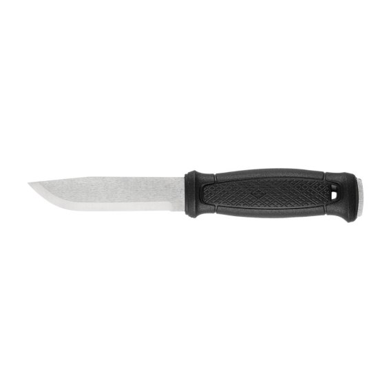 Garberg to nóż obozowy ze stałą głownią o pełnym trzpieniu (full-tang), co oznacza, że fixed wykonano z jednego kawałka stali. Taka konstrukcja w połączeniu z głownią o grubości 3,2 mm, tworzy bezkompromisowe narzędzie o ogromnej wytrzymałości, dzięki czemu Garberg oprócz wydajnego cięcia może służyć również do rąbania drewna, batonowania oraz podważania. Głownia o optymalnej długości roboczej (109 mm) ma użytkowy profil drop-point oraz tradycyjny szlif skandynawski, cechujący się bardzo dobrymi właściwościami tnącymi. Szlif skandynawski ma jeszcze jedną ogromną zaletę, jego wysoka krawędź tnąca pozwala na dosyć instynktowne ostrzenie, dlatego z procesem tym poradzą sobie nawet mniej doświadczone osoby. Nóż wykonano z cenionej stali nierdzewnej Sandvik 14C28N, która dzięki domieszce azotu ma zwiększoną odporność na korozję oraz wysoką twardość. Szwedzka nierdzewka dobrze utrzymuje ostrość, jest także dosyć łatwa do ostrzenia, dzięki czemu idealnie sprawdza się w terenie.
