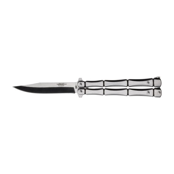 Joker JKR705 to nowoczesny nóż motylkowy o stalowej konstrukcji, z ostrzem o długości 10 cm i rękojeścią o ergonomicznym profilowaniu.