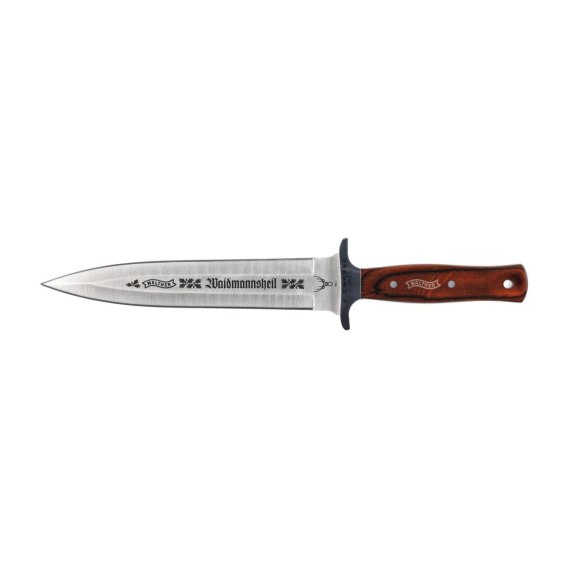 Klinga ma obustronny szlif oraz zbrocze na krew. Na klindze naniesiono grawerunki z logotypem Walther oraz tradycyjnym myśliwskim powitaniem „Waidmannsheil” (Darz Bór!). Przed zsunięciem się dłoni na ostrze chroni powiększony jelec, zdobiony francuską inskrycpją „La Chasse” (w języku polskim — polowanie).