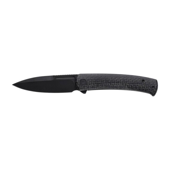 Rękojeść w składanym nożu na stronie prezentacyjnej wykonana została z Micarty w kolorze czarnym, płótna prasowanego pod ciśnieniem z żywicą, zaś od strony blokady ze stali nierdzewnej.