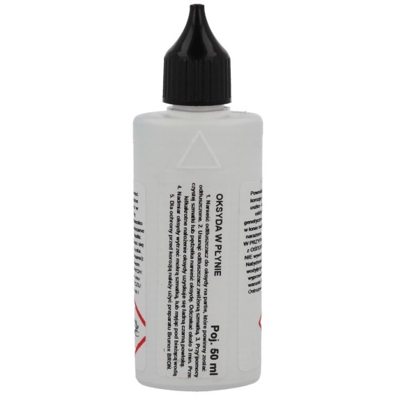 NU-Blak nowoczesna, trwała oksyda na zimno w płynie, opakowanie 50 ml. Przeznaczona do punktowego nakładania na wytarte lub uszkodzone części broni. Oksydowane nadaje stalowej powierzchni czarny matowy odcień. Za pomocą procesu uzyskuję się czarną dekoracyjną powłokę o grubości rzędu 1.3-3 µm. Proces czernienia nie wpływa znacząco na wymiary oksydowanego przedmiotu.