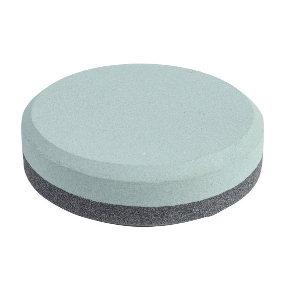Kamień ma dwie gradacje: zgrubną 180 i średnią 400, co pozwala na naprawę uszkodzonego ostrza, przywrócenie ostrości roboczej oraz jej wygładzenie. THE EDGE puckSHARP wykonano z karborundu (węglik krzemu), którego twarde ziarno (9,2 w skali MOhsa) ma doskonałe właściwości ścierne i polerskie. Osełka ma owalny kształt, co ułatwia ostrzenie dużych narzędzi oraz krawędzi tnącej o owalnym profilu.