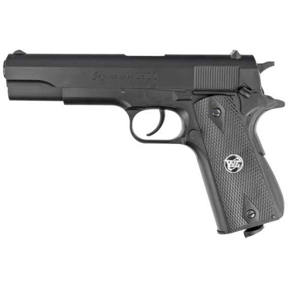 Pistolet wiatrówka WinGun Colt 1911 Commander Black 4.5 mm, CO2 to replika legendarnego pistoletu Colt 1911, przeznaczona dla miłośników strzelectwa rekreacyjnego. Model 125N charakteryzuje się solidną konstrukcją, zasilaniem CO2 oraz realistycznym wyglądem, co czyni go atrakcyjnym wyborem dla entuzjastów broni pneumatycznej.