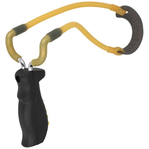 STRIKE NINE idealny model do wprowadzenia w arkana strzelania z procy. Prosta konstrukcja i dobre wyważenie gwarantują stabilność. Skórzany koszyk ułatwia sprawne umieszczenie ładunku a mocny kauczukowy naciąg zwiększa zasięg, zapewnia siłę miotanych kul.