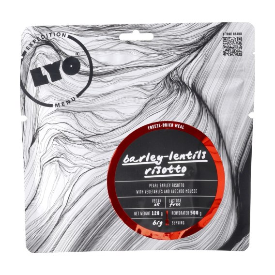LYOFOOD Risotto z pęczaku i soczewicy z musem awokado 500 g to świetnie zbilansowany posiłek wegetariański, dzięki któremu zachowasz energię podczas wędrówki na szlaku.